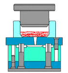 在高压作用下,使液态或半液态金属以较高的速度充填压铸型(压铸模具)型腔,并在压力下成型和凝固而获得铸件的方法。